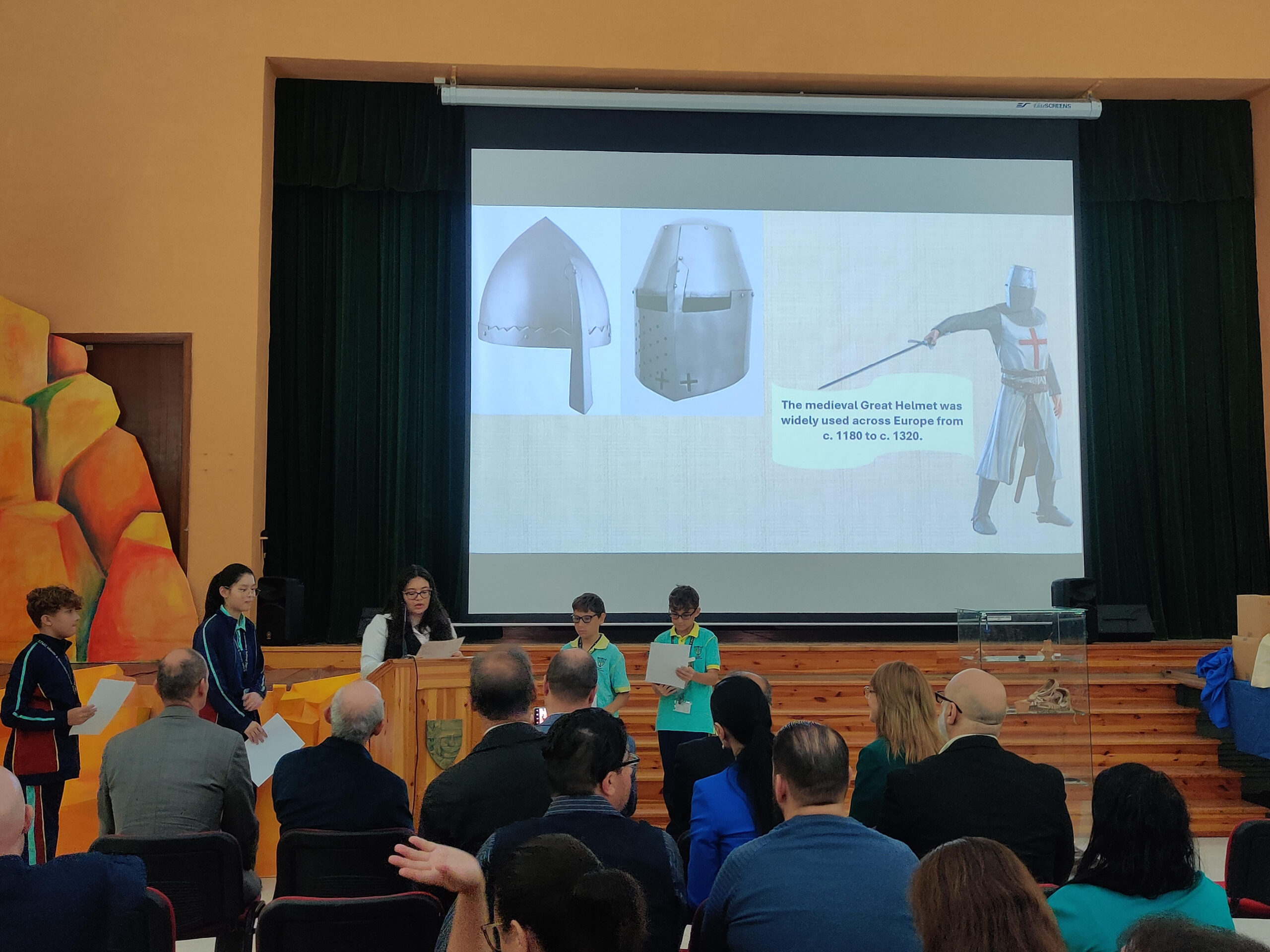 Mr. Jesmond Grech, Head of Department for History in that school, delivered a speech explaining the importance of teaching history in the curriculum, while Mr. Raymond Spiteri’s presentation focused on the educational benefits of teaching history using replicas of historical artefacts. Mr. Jonathan Muscat, HOD, announced a hands-on exercise involving samples from the artefacts carried out by a group of Year 7 and 8 students.  The students, under the guidance of their teachers, Ms Graziella Busuttil and Ms Antoinette Agius, were given time to explain their conclusions to the audience.