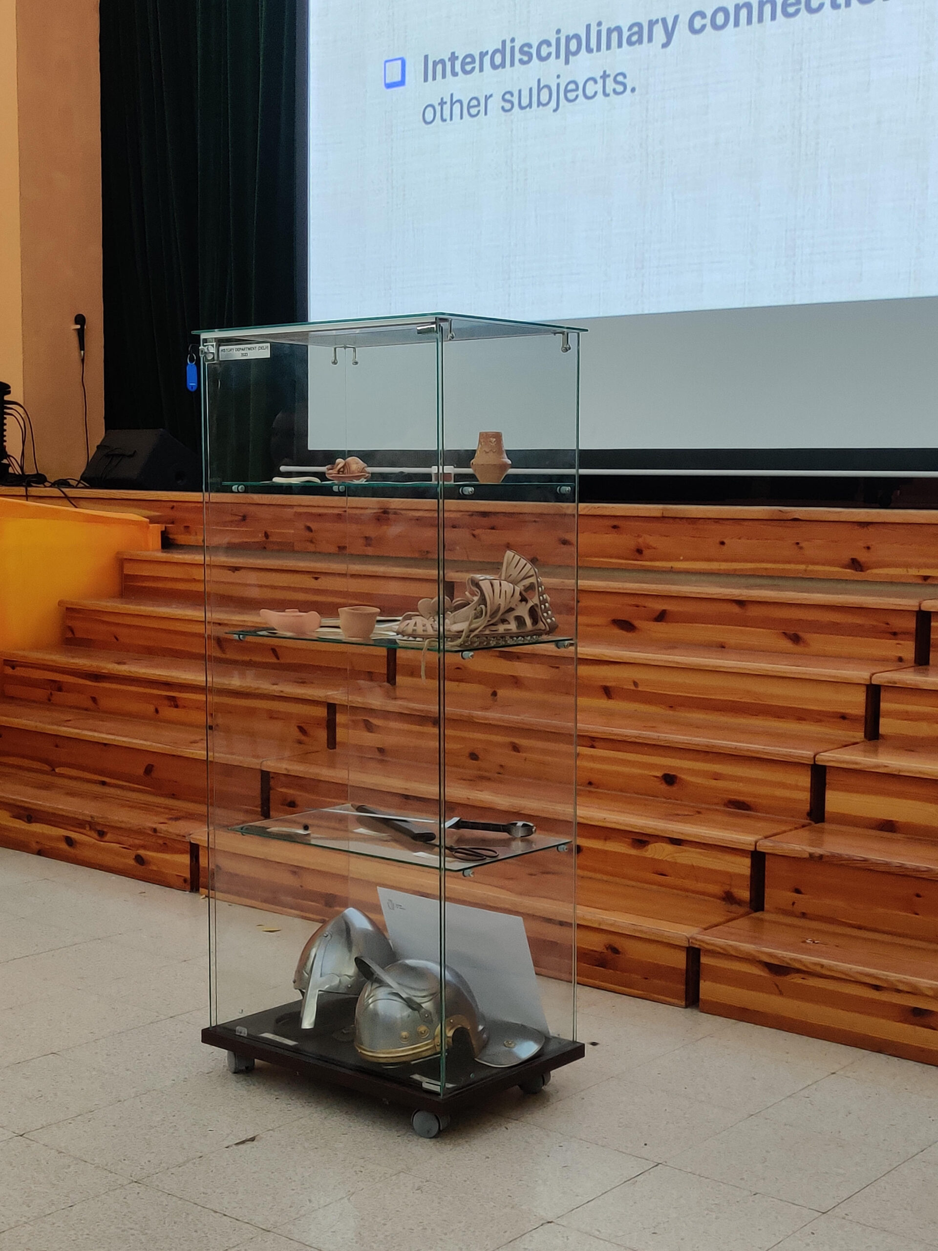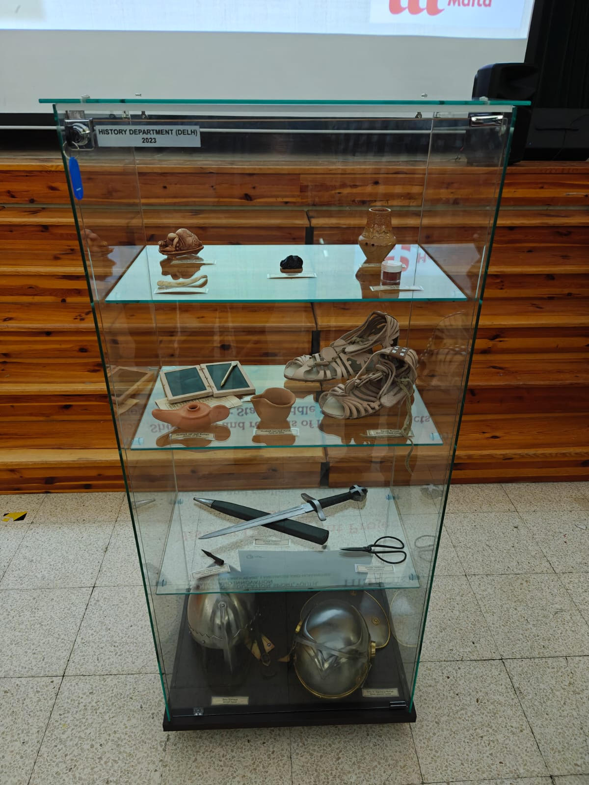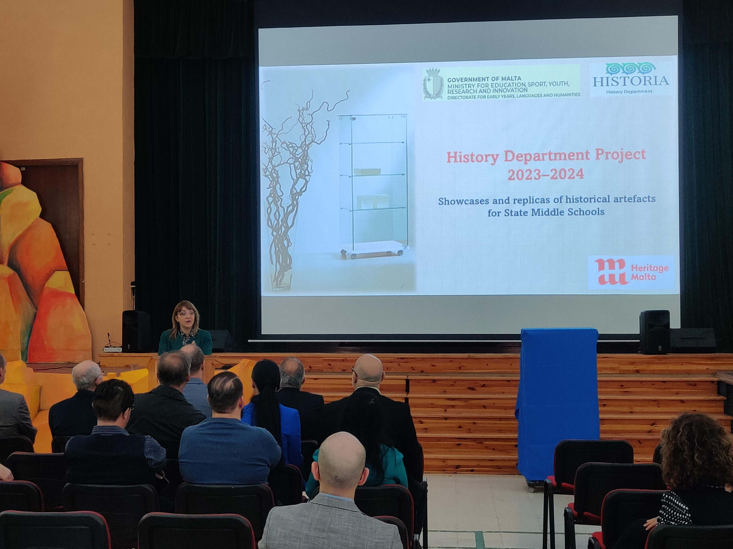 On Tuesday 19 November 2024, a ceremony was held at the Hall of St Thomas More College Carlo Diacono Middle and Secondary School, in which a showcase with historical artefacts was unveiled for use in State Middle Schools. A total of 13 showcases have been given to the State Middle School by the History Department within the DELH which will host several replicas of historical artifacts from pre-history to the Middle Ages. This was done so that the students, while observing and handling such artefacts, could reach conclusions about the people and the time when similar artefacts were used.